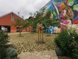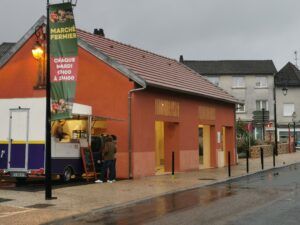 - Transformation de l’ancien commerce en une « petite halle couverte » ouverte sur l’espace public (lieu de vie et de rencontre).
